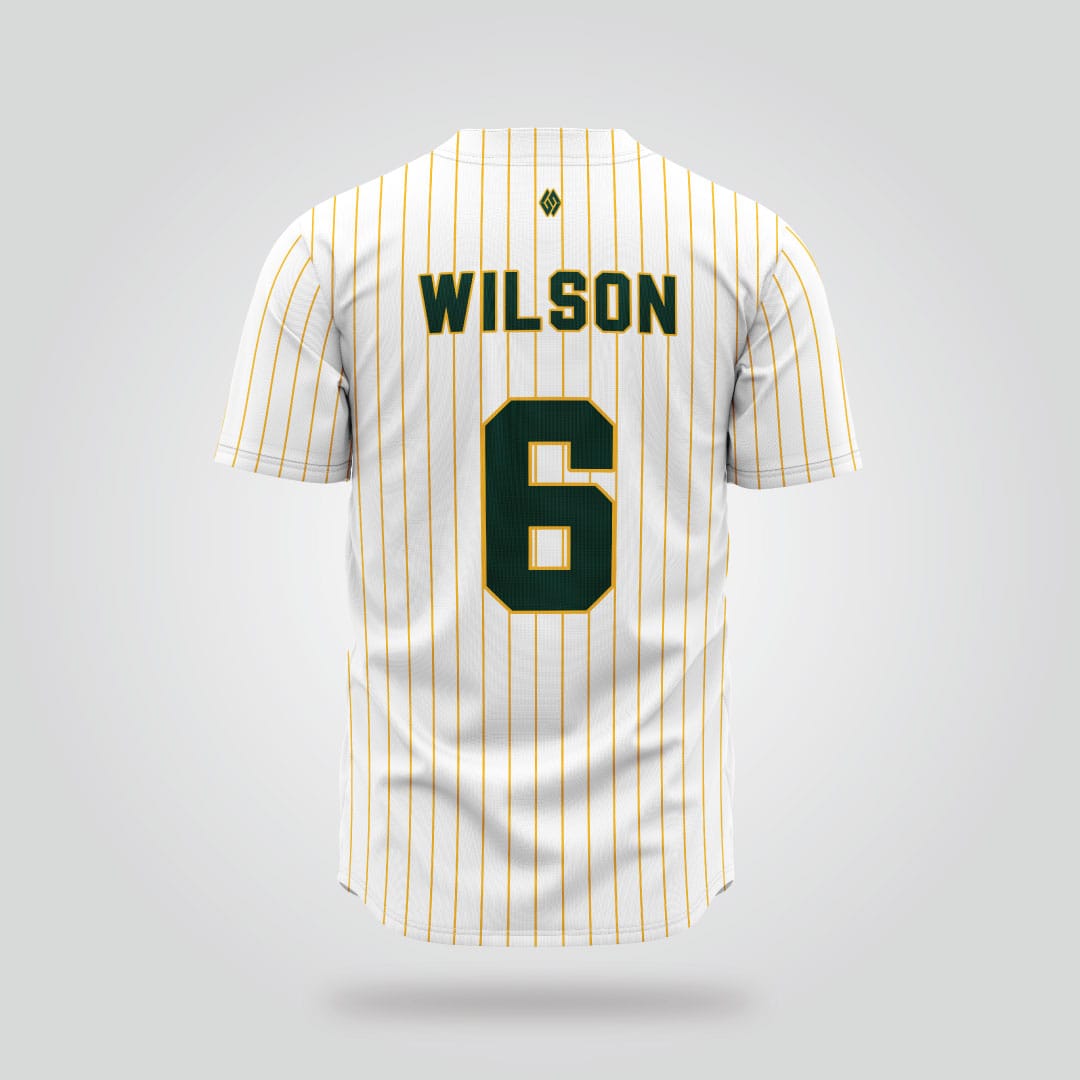 Bring classic ballpark style to the field with the Oakland Athletics White Pinstripe Baseball Jersey. Designed with a crisp white base and bold gold pinstripes, this jersey delivers a timeless look inspired by the heritage of Athletics baseball.