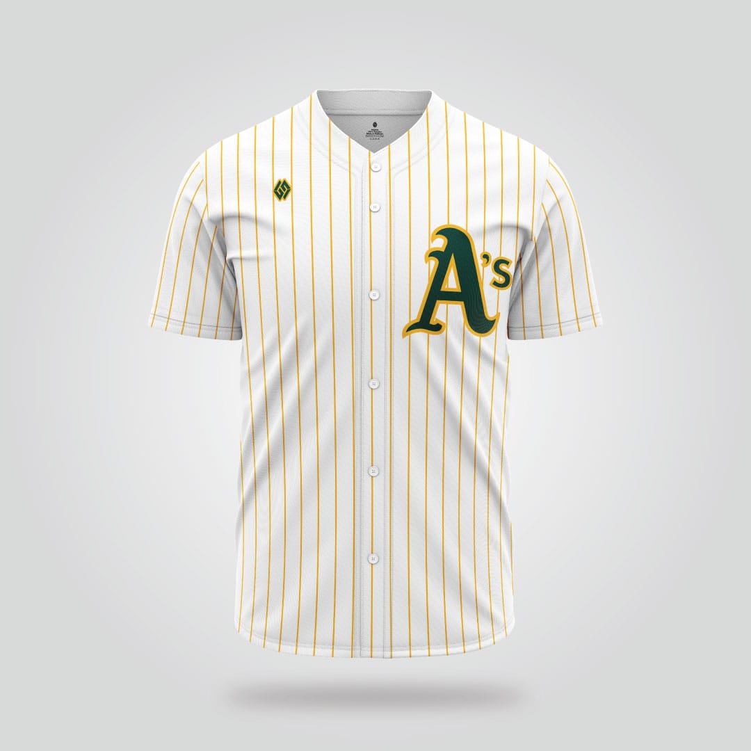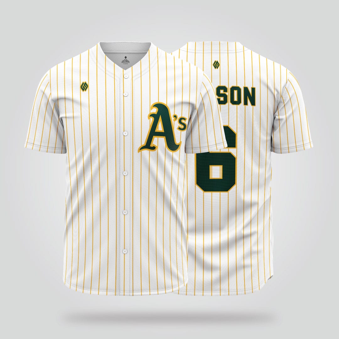 Oakland Athletics White Pinstripe Baseball Jersey – Classic Gold Stripe Edition